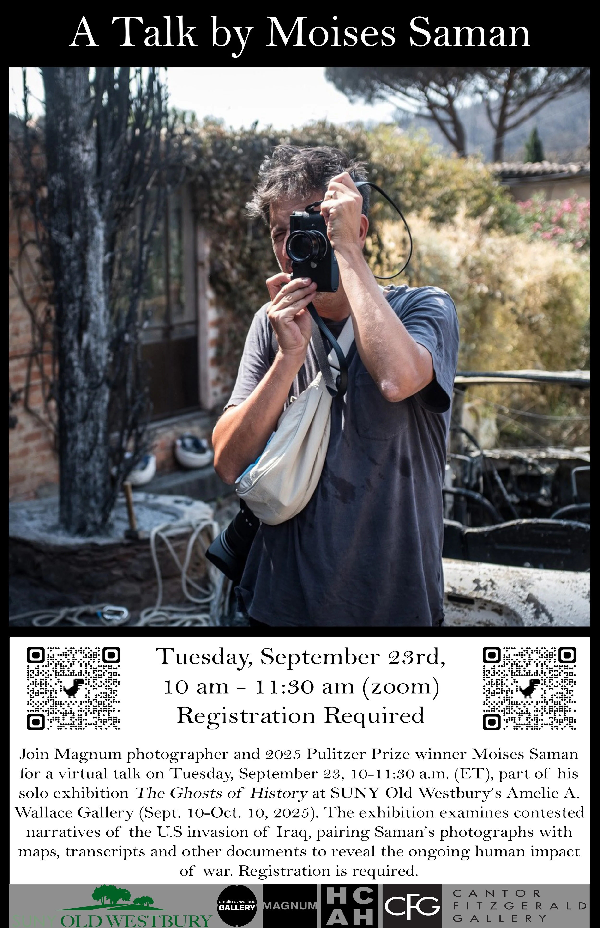 From September 10 through October 10, the Amelie A. Wallace Gallery, SUNY Old Westbury presents a selection of more than fifty prints by Saman, as well as a video commissioned by the Cantor Fitzgerald Gallery of Haverford College. The Ghosts of History highlights the 21st anniversary of the US-led invasion and occupation of Iraq by exploring the construction of competing narratives of war through the interaction of images and language.